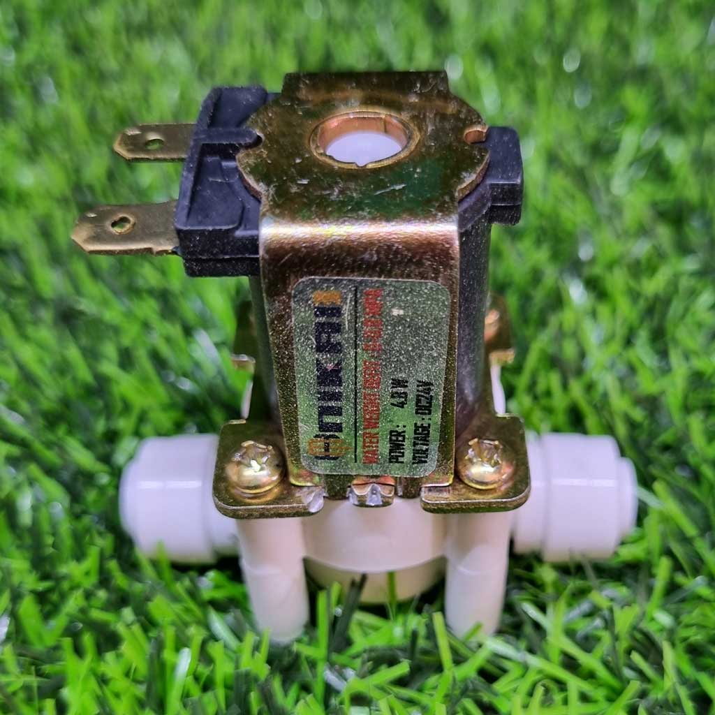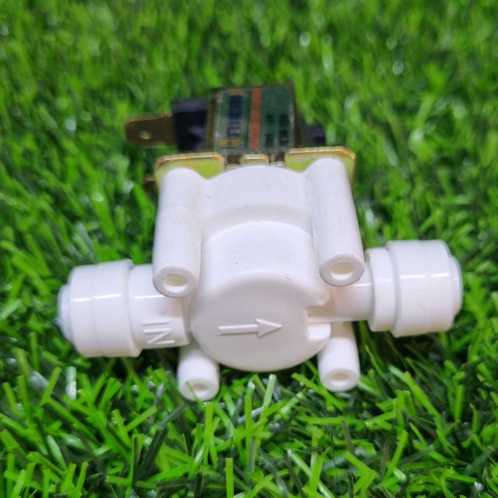 در دستگاه تصفیه آب مبتنی بر روش اسمز معکوس ، امروزه شیر برقی جایگزین «چهار راهه مکانیکی» شده است. شیر برقی این وظیفه را دارد که تنها در صورت لزوم مسیر آب ورودی را باز کند و در غیر این صورت اجازه ورود آب به فیلتر تصفیه آب را ندهد. شیر برقی خانگی با ولتاژ برق ۲۴ ولت کار می کند و در دستگاه تصفیه آب خانگی قابل نصب است.